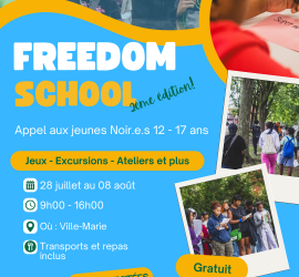 ???? Grande nouvelle pour les jeunes Noir.e.s de Montréal! ???? Es-tu un.e jeune Noir.e âgé.e de 12 à 17 ans vivant à Montréal, ou connais-tu quelqu’un qui l’est? Si c’est le cas, nous avons une opportunité incroyable spécialement pour toi! Freedom School 2024 est là pour offrir une expérience transformatrice […]